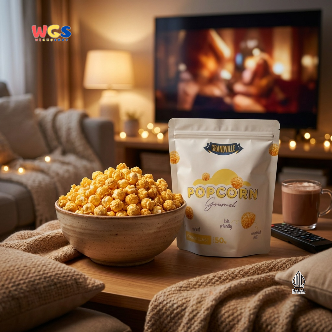 Kemasan pouch praktis menjaga popcorn tetap higienis serta mudah dibawa sehingga cocok dinikmati di rumah, saat bekerja, ataupun saat bepergian.