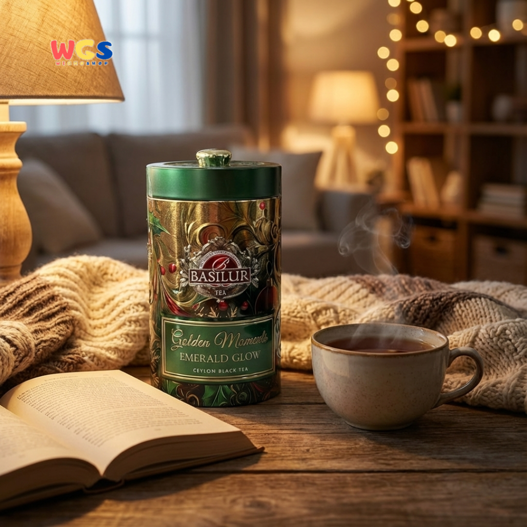 Basilur Golden Moments Emerald Glow adalah teh hitam Ceylon premium yang dipadukan dengan sentuhan lembut cranberry, daun stroberi, serta aroma creamy cookies and cream. Dikemas dalam tin eksklusif bernuansa hijau zamrud, seri Golden Moments ini dirancang untuk menghadirkan pengalaman minum teh yang elegan, hangat, dan menenangkan. Setiap tegukan menawarkan karakter teh hitam Ceylon yang kuat, dibalut sensasi biskuit creamy dan hint buah cranberry yang segar.
