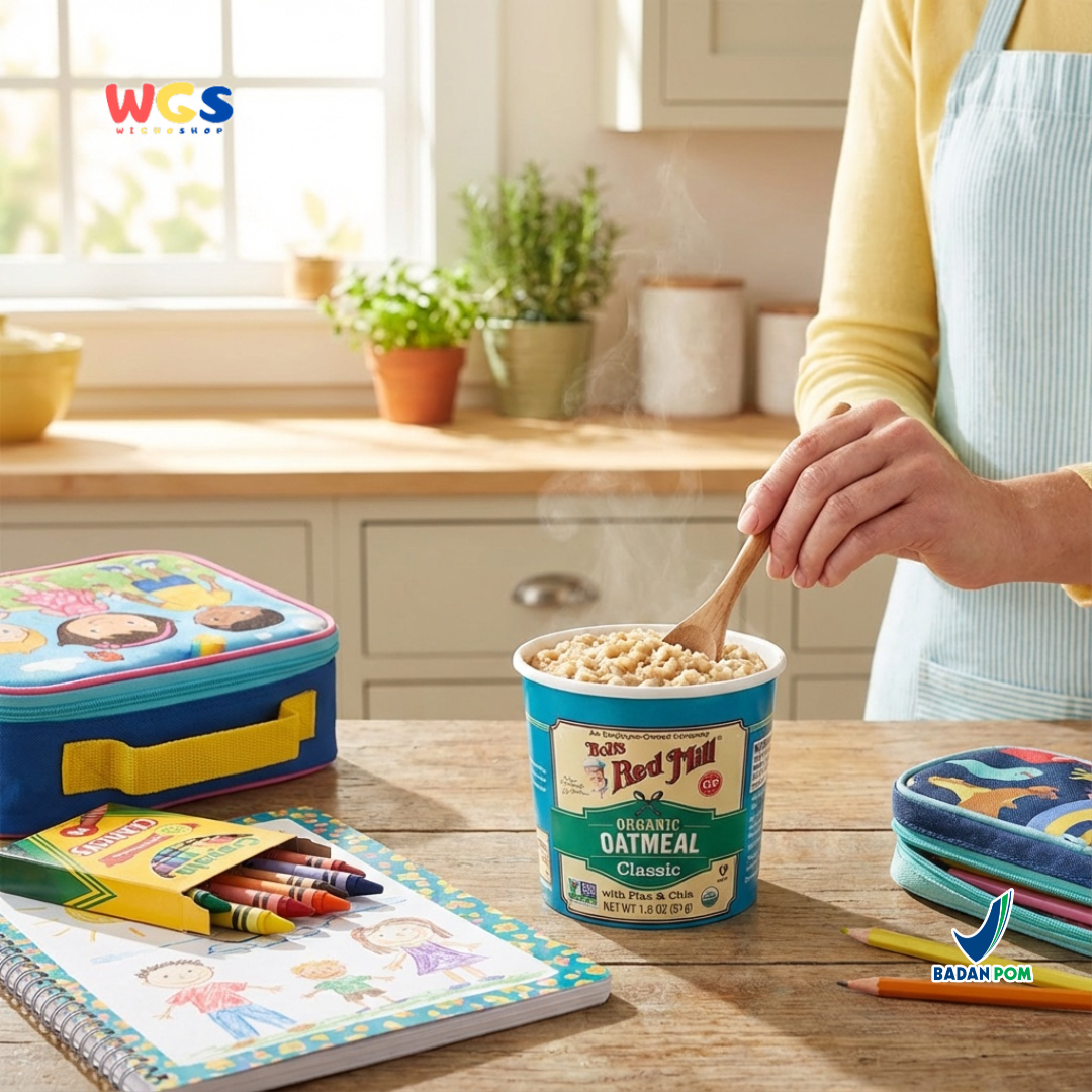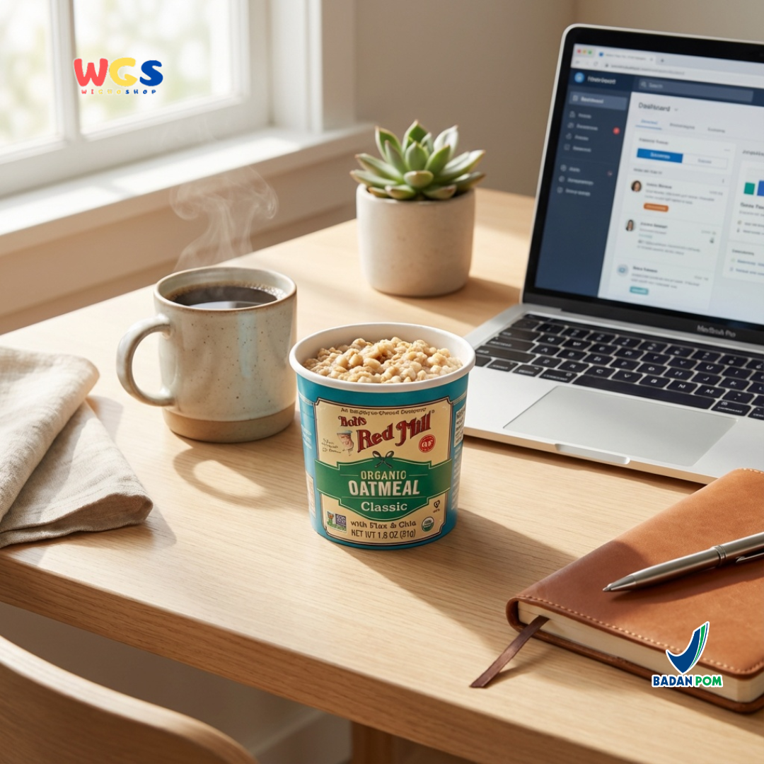 Bob’s Red Mill Organic Oatmeal telah bersertifikat USDA Organic, Non-GMO Project Verified, dan Gluten Free, sehingga aman dikonsumsi bagi Anda yang memiliki sensitivitas gluten. Cup oatmeal ini sangat ideal untuk sarapan cepat di kantor, bekal perjalanan, atau stok makanan sehat di rumah.