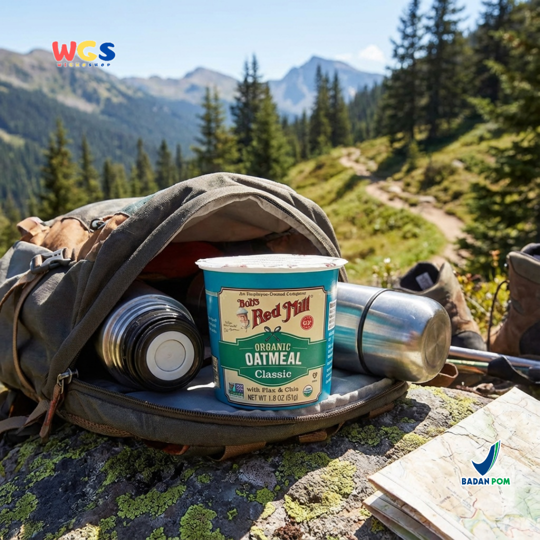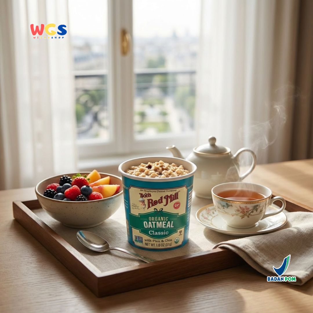 Bob’s Red Mill Organic Oatmeal Classic with Flax & Chia adalah oatmeal instan organik berkualitas premium yang dibuat dari whole grain rolled oats pilihan, dipadukan dengan biji flax dan chia yang bernutrisi. Dikemas dalam bentuk cup praktis 51 gram, produk ini dirancang untuk Anda yang menginginkan sarapan atau camilan sehat, cepat, dan mudah disiapkan kapan saja dan di mana saja.