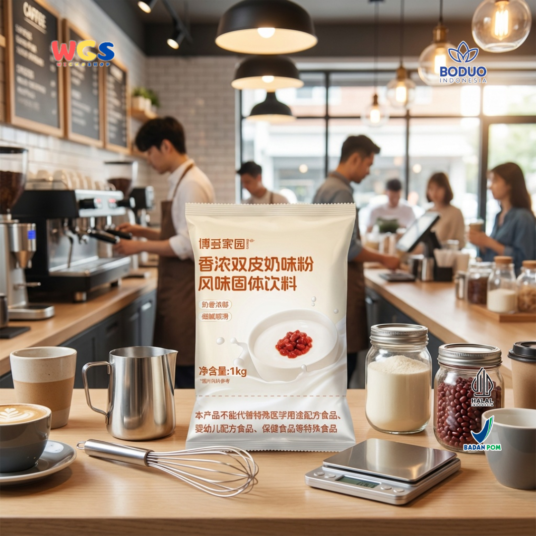 BODUO menghadirkan Double Layer Milk Custard Powder sebagai solusi praktis bagi pelaku usaha yang ingin menghadirkan dessert dan minuman berkelas tanpa proses rumit. Terinspirasi dari dessert Asia modern, produk ini membantu menciptakan menu yang menarik secara visual, lembut di tekstur, dan kaya rasa, sehingga meningkatkan nilai jual dan pengalaman pelanggan.