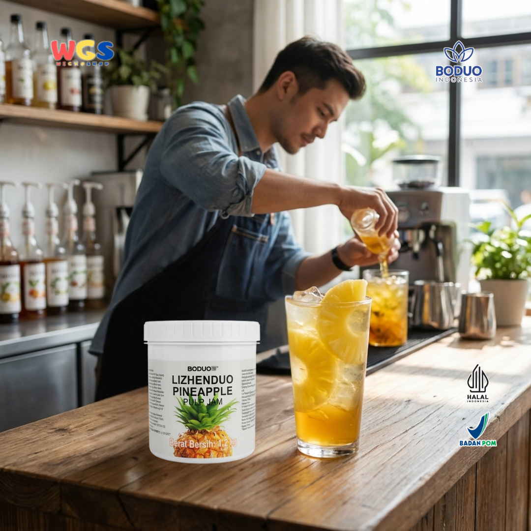 BODUO Lizhenduo Pineapple Pulp Jam adalah solusi praktis dan berkualitas untuk menciptakan menu berbasis nanas yang menarik, konsisten, dan bernilai jual tinggi bagi usaha minuman dan dessert Anda.