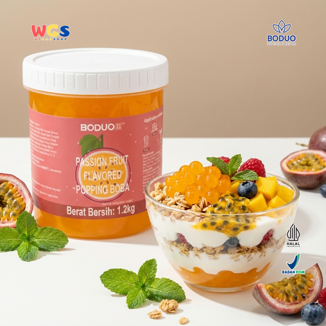 BODUO Passion Fruit Flavored Popping Boba 1.2kg – Topping Minuman dan Dessert Premium