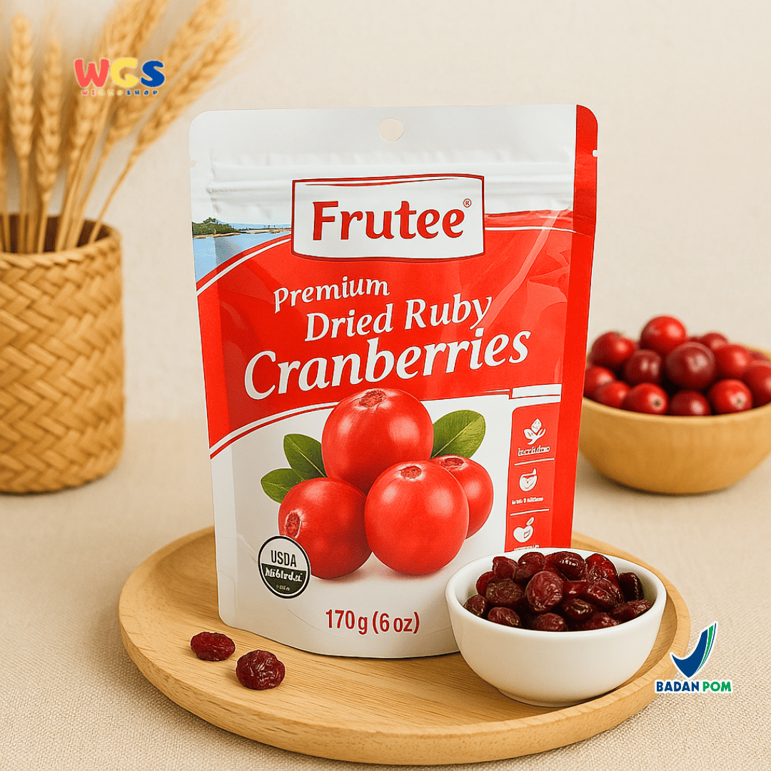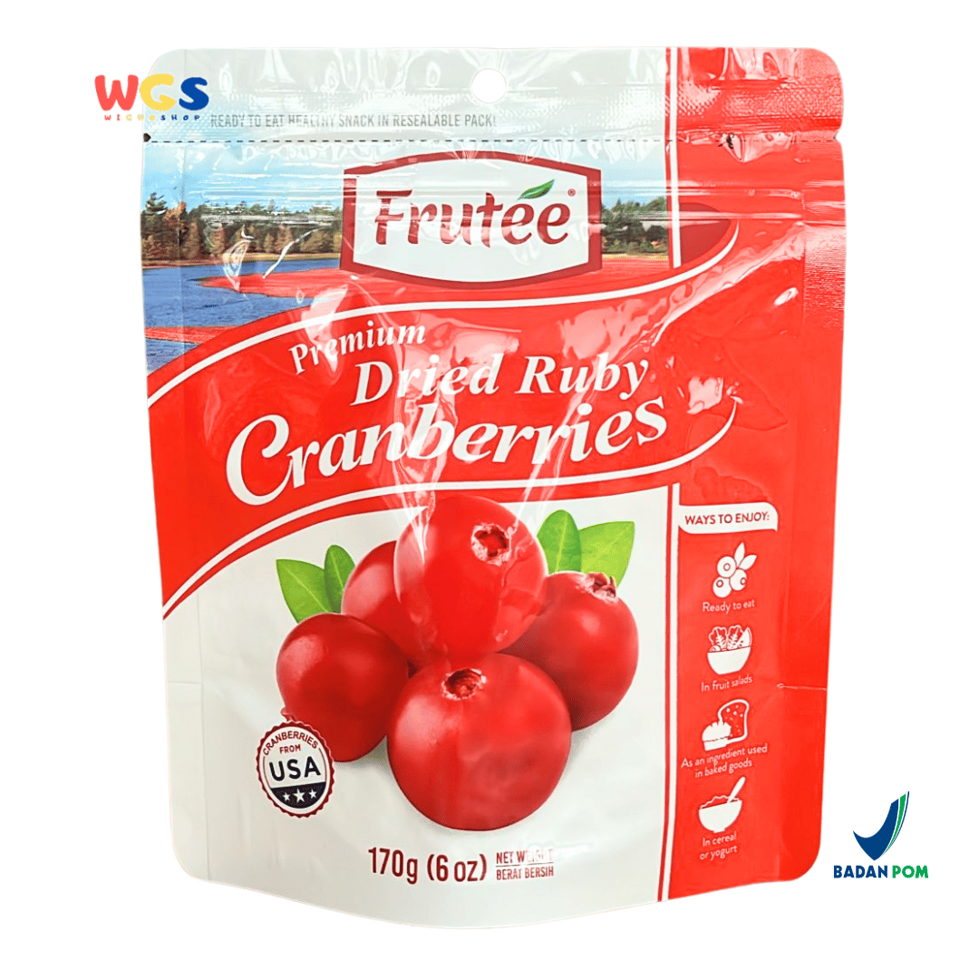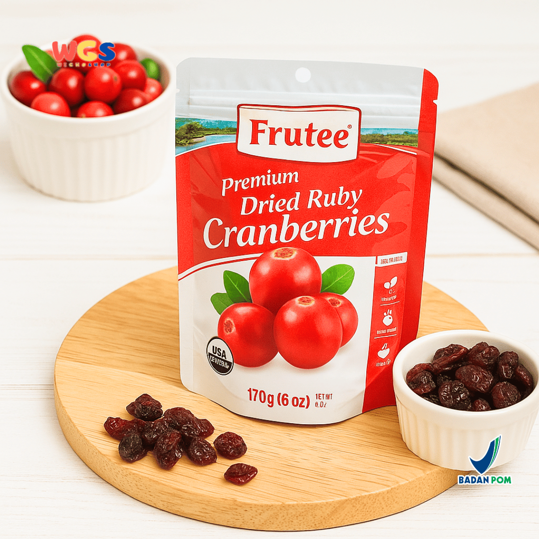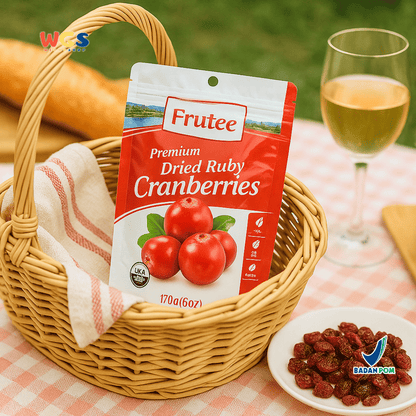 Nikmati kelezatan alami cranberry dalam setiap gigitan Frutee Dried Ruby Cranberries — camilan sehat dan praktis yang memberikan manfaat bagi tubuh dan cocok untuk semua aktivitas harian Anda.