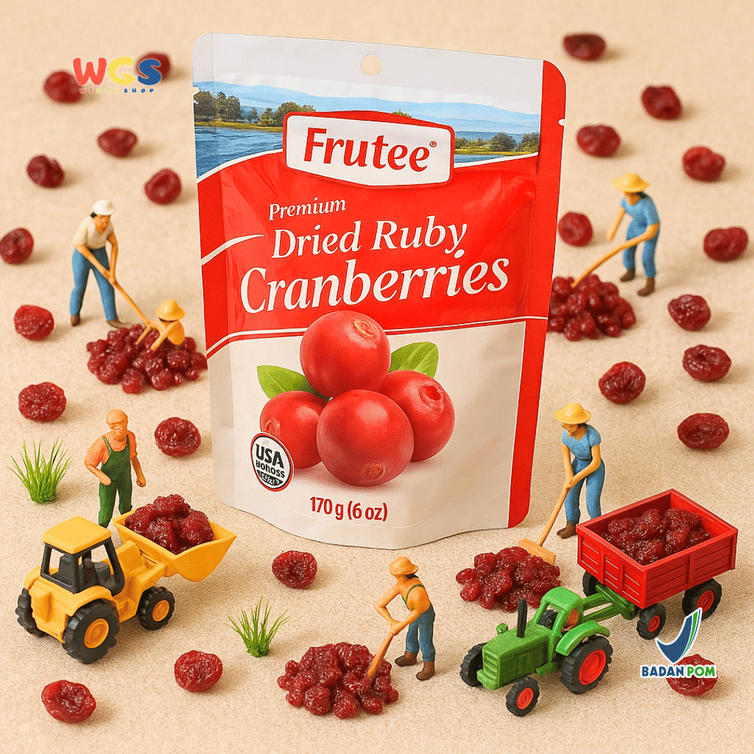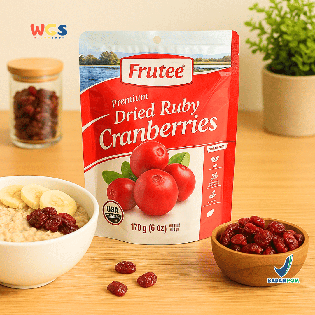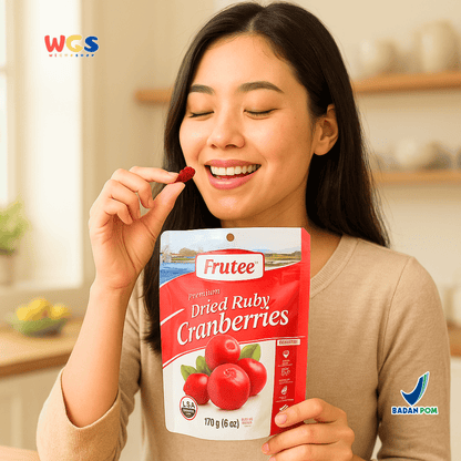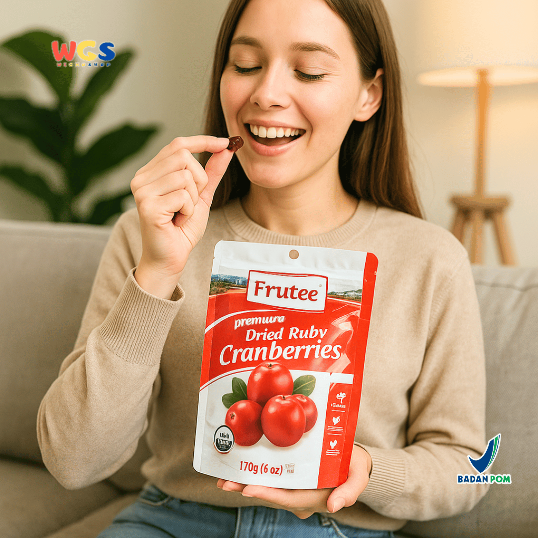 Nikmati kelezatan alami cranberry dalam setiap gigitan Frutee Dried Ruby Cranberries — camilan sehat dan praktis yang memberikan manfaat bagi tubuh dan cocok untuk semua aktivitas harian Anda.