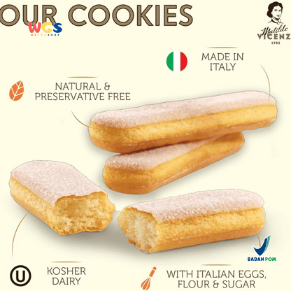 Vicenzovo Ladyfingers Italia 200g – Biskuit Lembut Tradisional untuk Tiramisu & Aneka Dessert