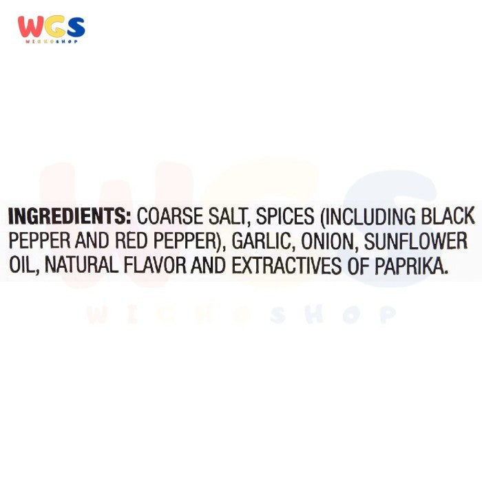 Coarse Salt, Spices (Including Black Pepper and Red Pepper), Garlic, Onion, Sunflower Oil, Natural Flavor and Extractives of Paprika.