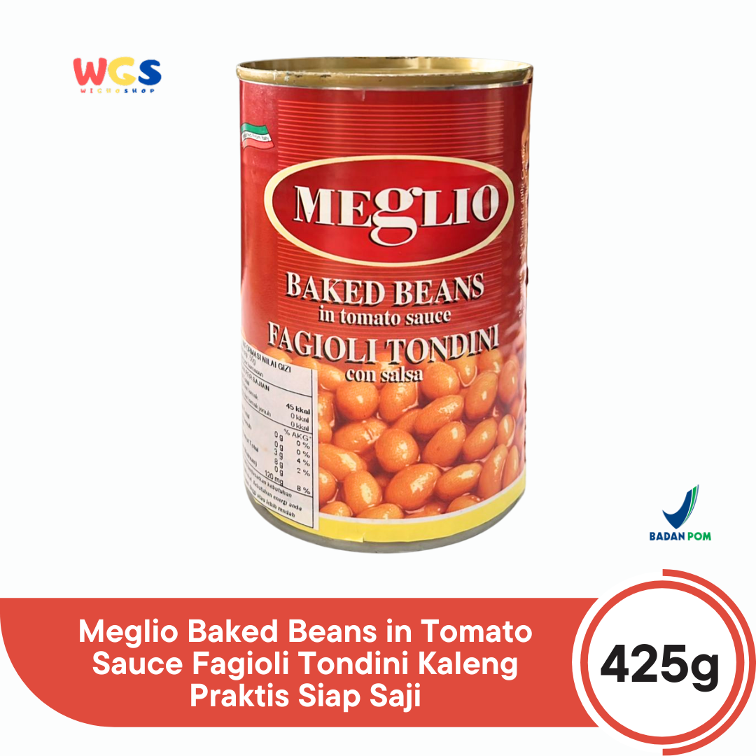 Meglio Baked Beans Fagioli Tondini merupakan makanan olahan siap saji berbahan dasar kacang merah dalam saus tomat. Dikemas dalam ukuran 425g yang ideal untuk konsumsi keluarga maupun sebagai bahan masakan serbaguna, produk ini membantu menghemat waktu memasak tanpa mengurangi kualitas rasa.