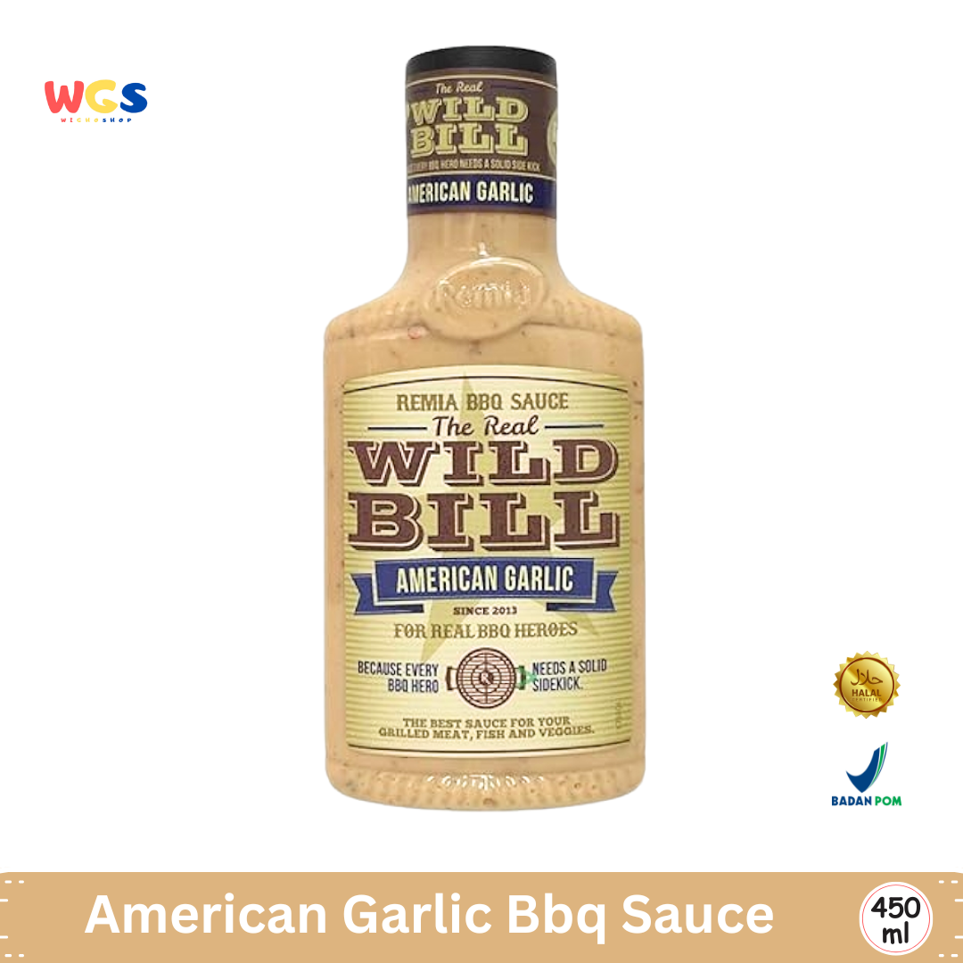 Lengkapi sajian BBQ Anda dengan rasa khas ala Amerika dari Remia Wild Bill American Garlic BBQ Sauce 450ml. Saus ini menghadirkan perpaduan sempurna antara krim bawang putih dan rempah-rempah aromatik yang gurih dan lezat, menjadikannya pilihan ideal untuk olesan, saus cocol, maupun marinasi.