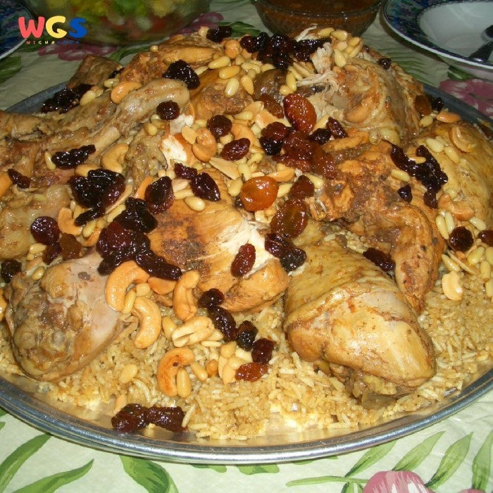 The main ingredient that accompanies the spices is the meat. The meats used are usually chicken, goat, lamb, camel, beef, fish or shrimp. In chicken machbs, a whole chicken is used.