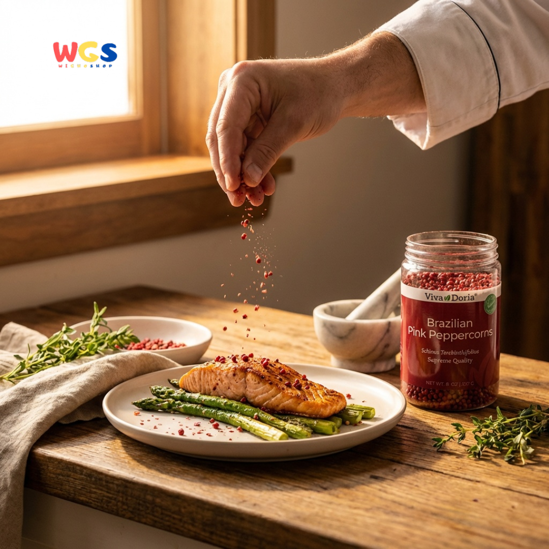 Viva Doria Brazilian Pink Peppercorns 227g cocok untuk Anda yang mencari lada pink utuh premium dengan aroma harum, rasa lembut, dan tampilan elegan untuk steak, seafood, salad, saus, dan berbagai hidangan spesial.